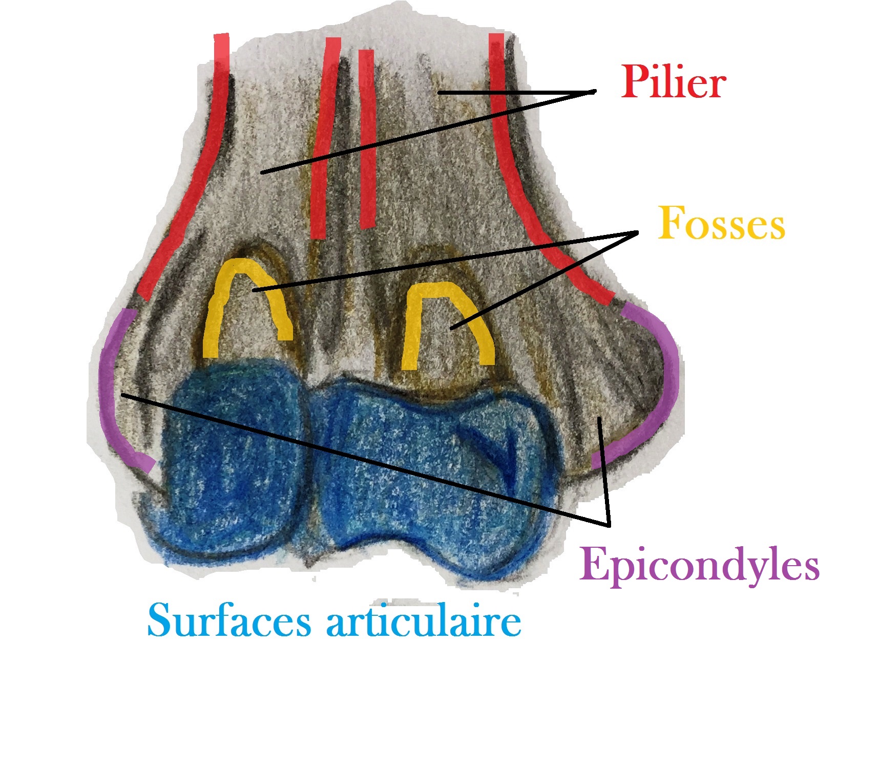 - On trouve bien à leur niveau les fosses radiale (condyle latéral) et ulnaire (condyle médial) ?