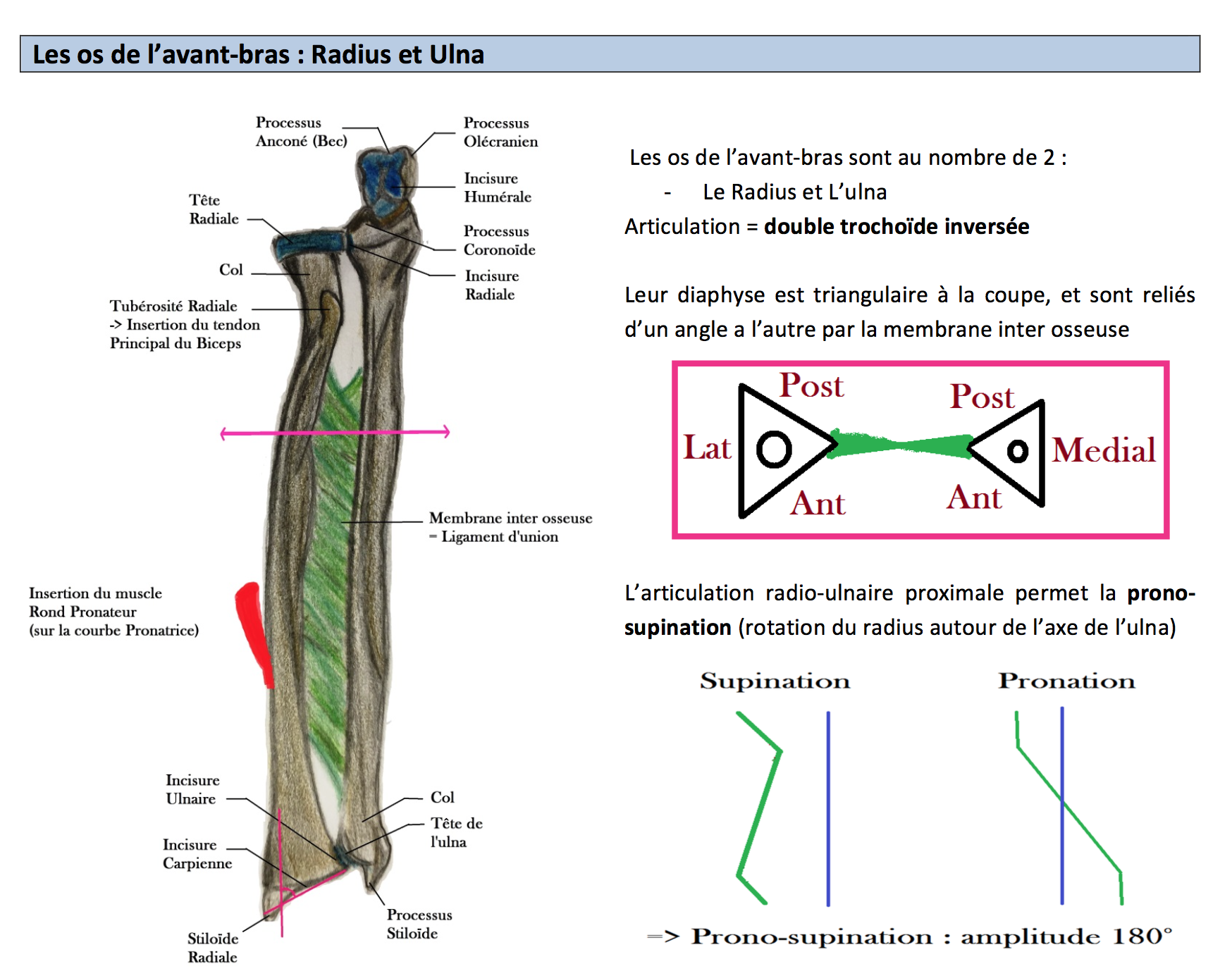 il me semble qu'il y a un problème avec la ronéo qui dit que l'ulna a une diaphyse avec une face latérale.