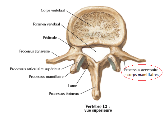 :arrow: Est-ce que les processus articulaiers sont aussi au niveau des tubercules mamillaires ou si ces derniers ne sont que surmontés des processus articulaires supérieurs ?