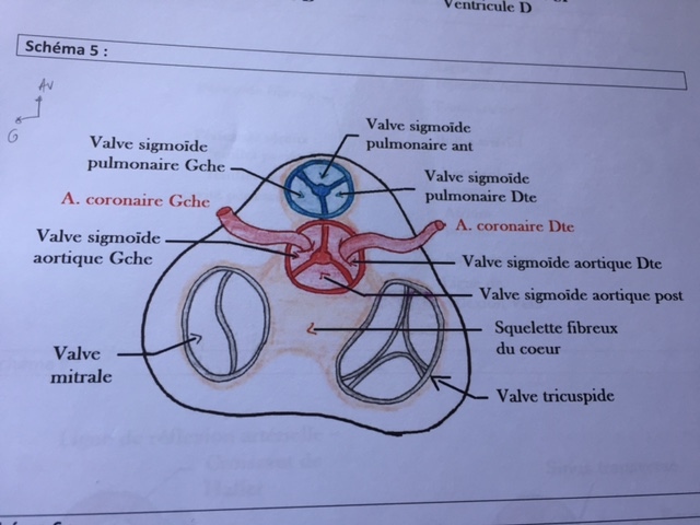 Dans le schéma, on voit que la valve sigmoïde aortique possède 2 cuspides post et 1 ant et que la sigmoïde pulmonaire possède 2 cuspides ant et 1 post, c'est pas plutôt l'inverse ? Comme écrit dans la ronéo ?