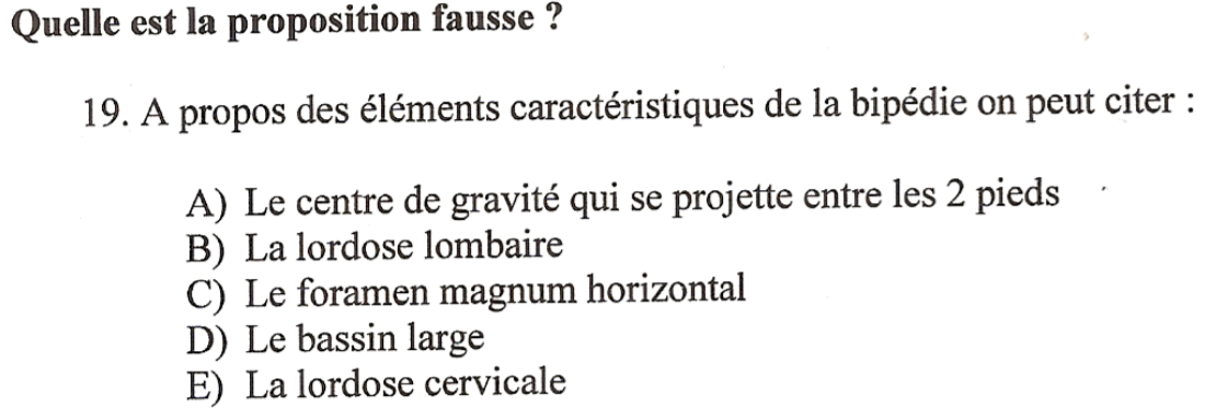 alors moi j'avais pas mis A parce que si je me souviens y a le triangle ou polygone de sustentation qui se trouve justement entre les 2 pieds mais apres peut être que je dis n'importe quoi