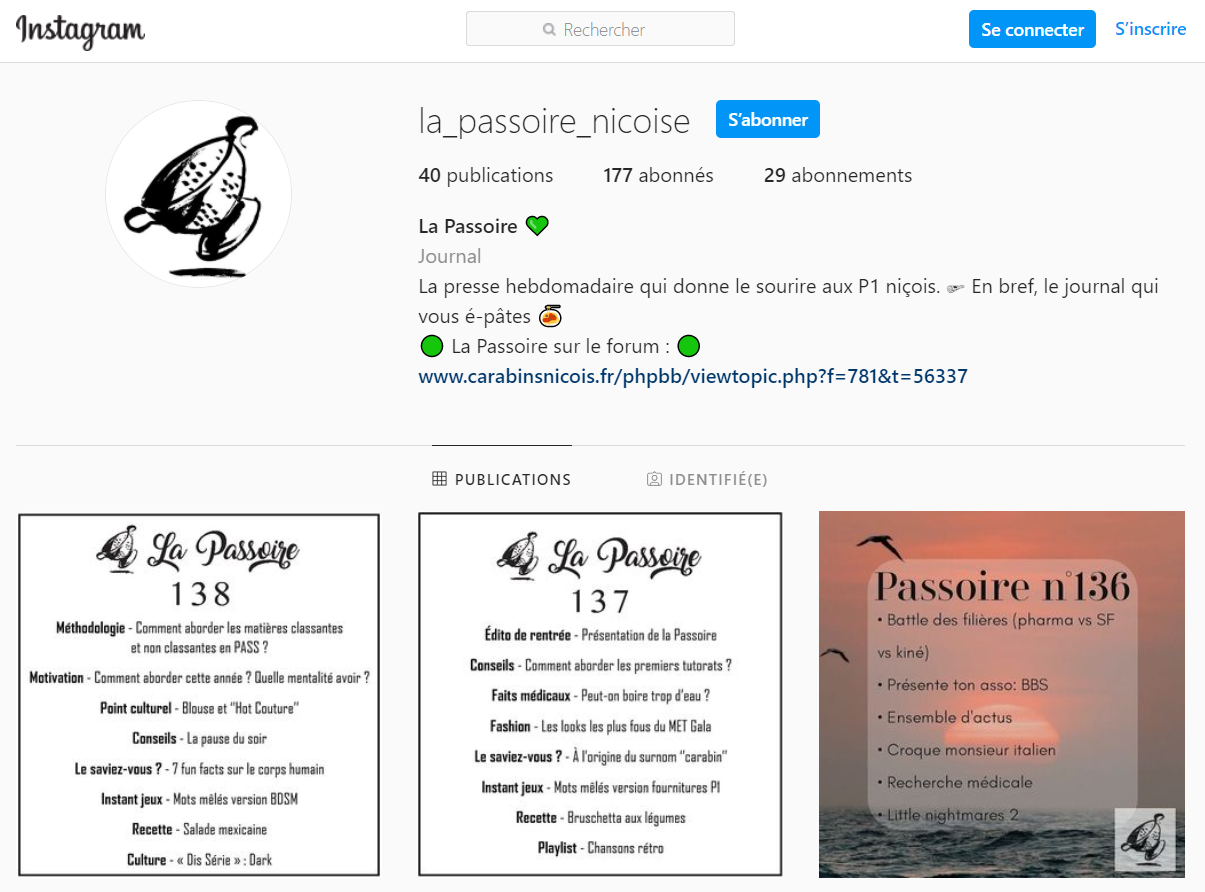 💻 Facebook : Sur cette page vous retrouverez le programme du prochain numéro, la correction des jeux, des extraits d'articles en avant-première, des citations en tout genre, des mots d'encouragements, des conseils flash écrits avec amour par vos rédacteurs préférés et pleins d'autres choses ! LaPassoireNicoise