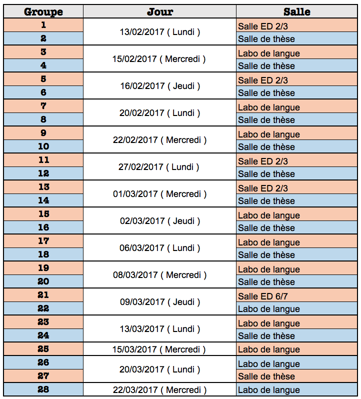 - Regarde quel jour tu as ta séance de TD ( ce sera de 15h à 17h, à Pasteur, peut importe le jour