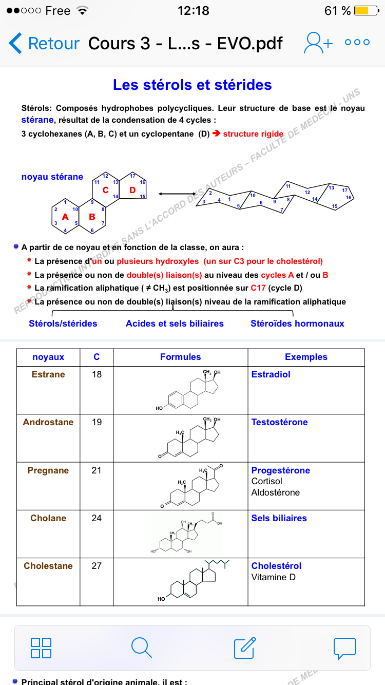 Et du coup je me demandais aussi pour le tableau de la page 5, les exemples (oestradiol, testostérone, etc) sont des dérivés de stérol, donc stérane + OH, on est d'accord?