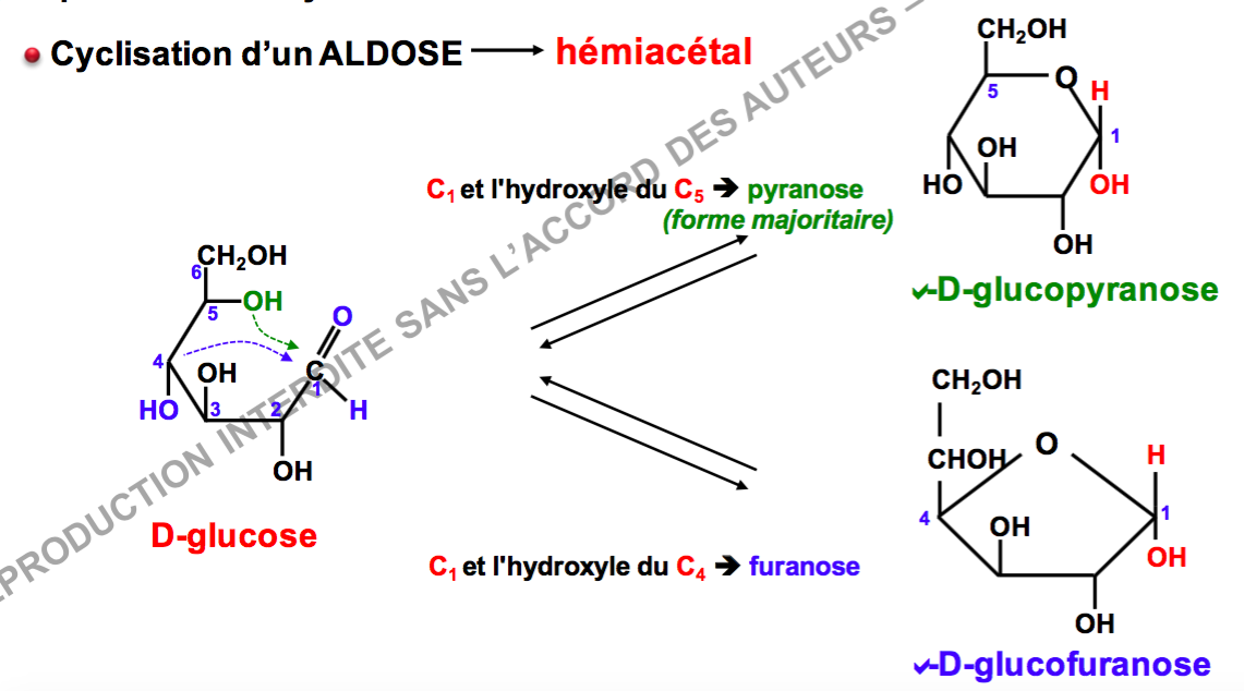 - un pyranose : tu as 1 carbone sortant !