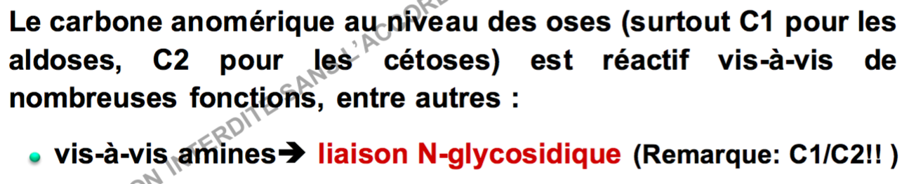 Mais du coup une liaison N-glycosidiques se fait avec un Amine ou un Amide? Parce que p13 de la ronéo c'est écrit Amide et p7 Amine?