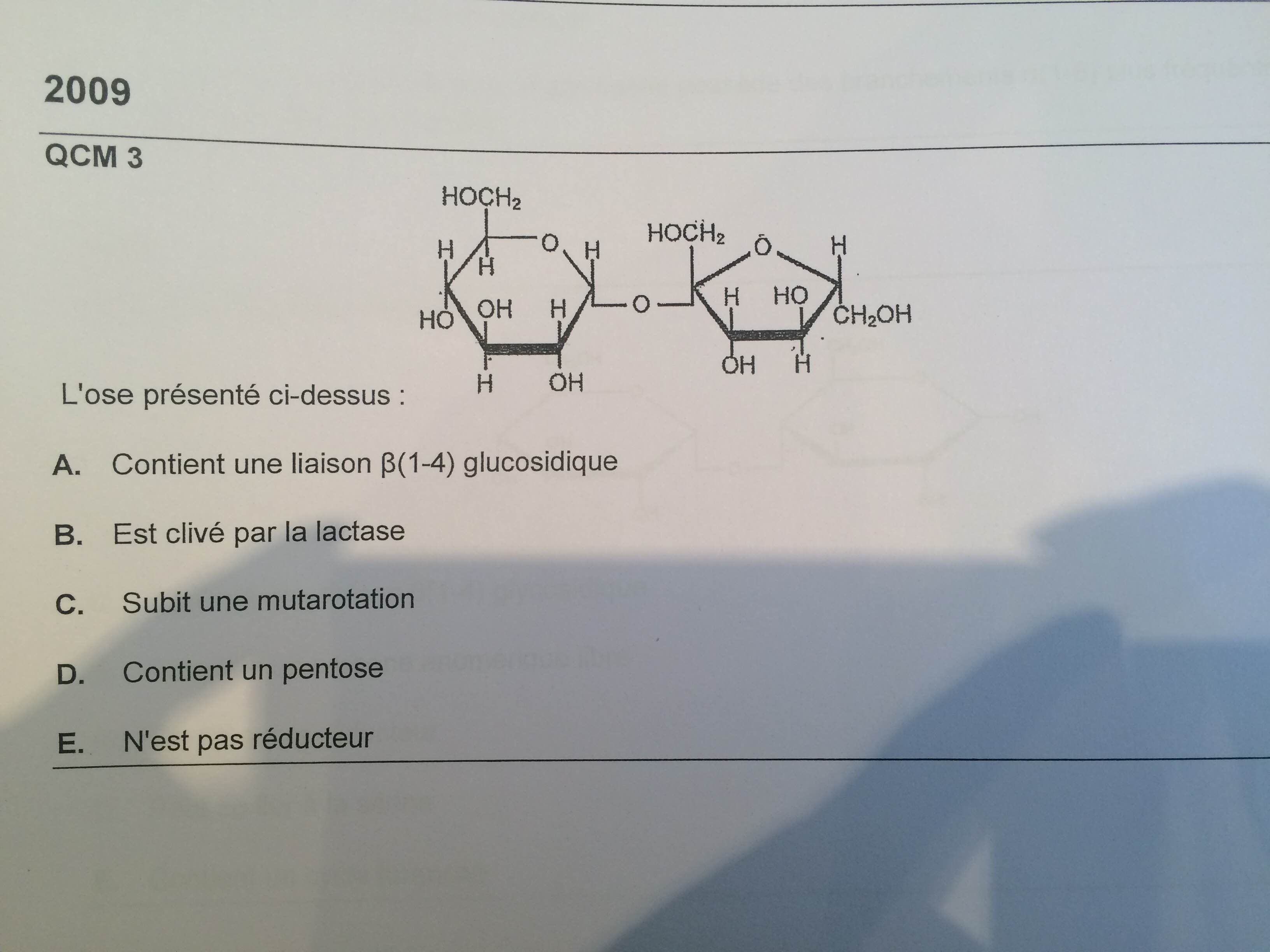 Par exemple, dans ce QCM, je n'arrive pas à distinguer les liaisons alpha et Beta, ou sont situés les C anomériques et si l'ose est un réducteur. :D
