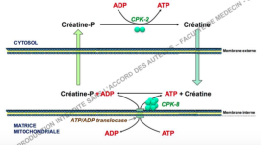 Petite question la CPK 8 se trouve bien dans l'espace intermembranaire de la mitochondrie non ? Du coup à la page 6 L'ATP est transféré dans l'espace intermembranaire grâce à l'action de la translocase et non pas dans le cytosol et du coup L'ADP forme ensuite peut effectivement retourné dans le cytosol non ?