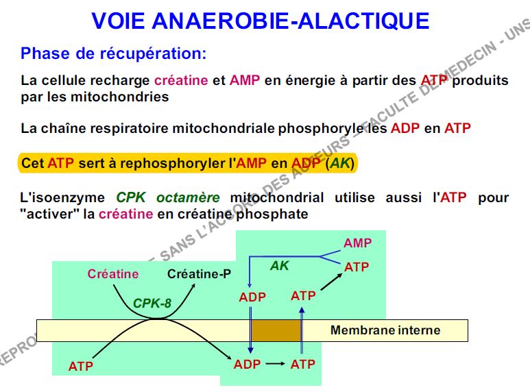 Voilà petite question: lors de la phase de récupération de la voie anaérobie alactique, la cellule refait les stocks en créatine-P et en ADP ou en ATP ? Parce que sur la diapo c'est bien marqué ADP mais dans les erratas de la ronéo n^5 c'est marqué que non.