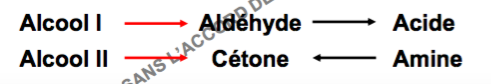 NB : De plus l'oxydation d'un alcool secondaire donne une cétone par une enzyme qui fonctionne avec du NAD ou du FAD➔