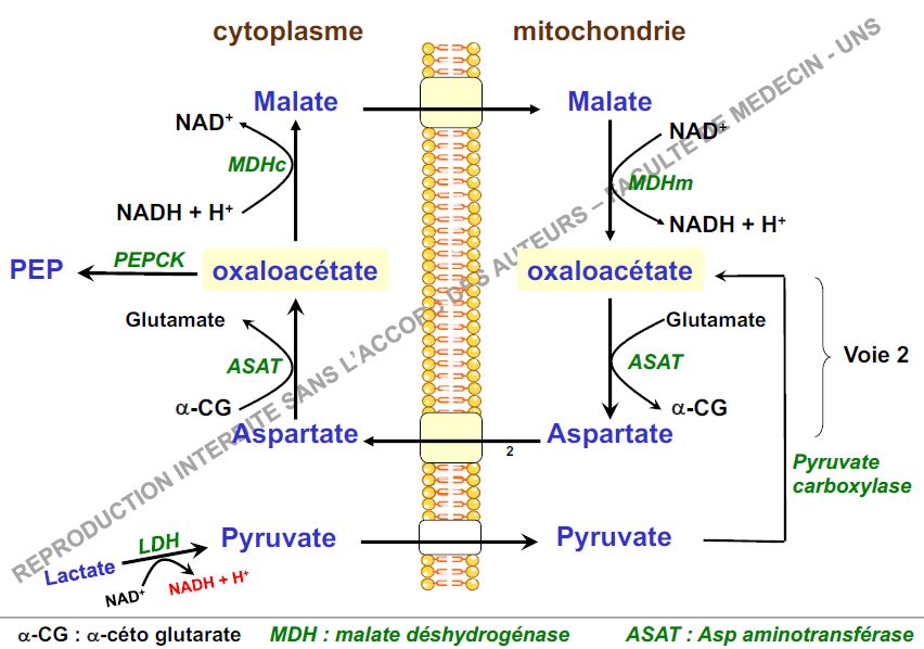 Ensuite il n'y aura pas l'oxydation d'un NADH cytoplasmique du à la réaction OAA ==> Malate, vu qu'elle n'a pas lieu, étant donné que l'OAA devient du PEP