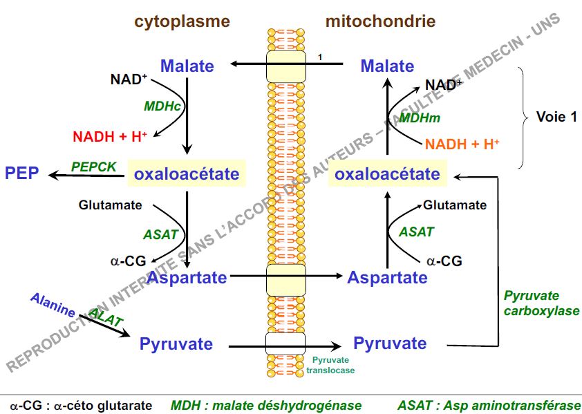 Je me demande, dans quelle mesure la transformation d'un pyruvate en OAA puis en aspartate puis re en OAA va entraîner la production d'un NADH H+ ?