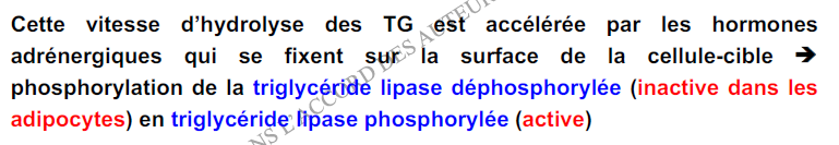 "La triglycéride lipase est active phosphorylée" --> Vrai, je suis d'accord c'est écrit dans la diapo du prof, mais j'ai fais quelques recherches pour m'informer un peu plus