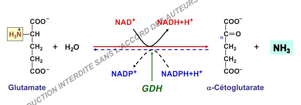 C'est forcément le NAD pour catalyser la réaction vers l'alpha-cétoglutarate et NADP vers le glutamate.. ou l'inverse est possible ?? ^^