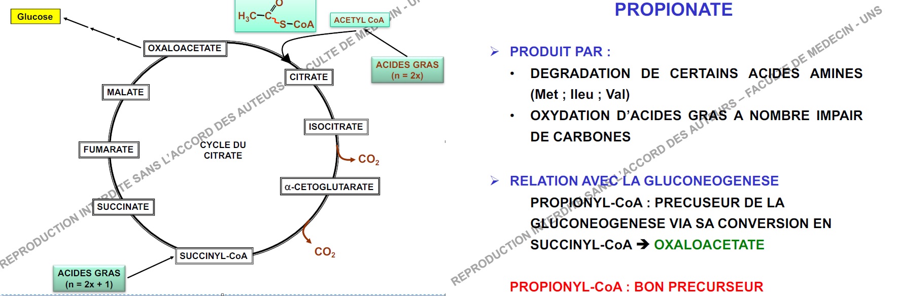 - à la page précédente il est dit que seul le propionyl CoA est précurseur de la synthèse des glucides (via la NGG). Est ce une errata ?