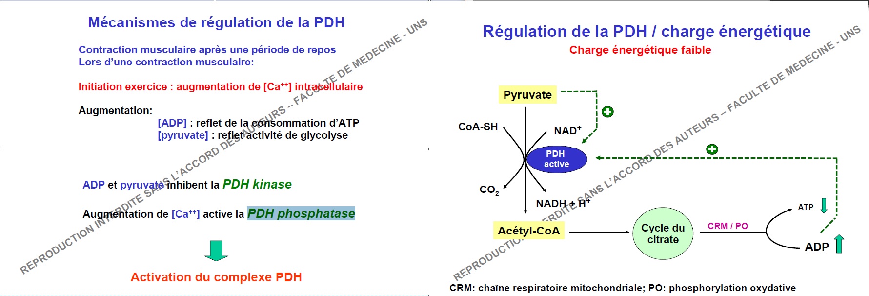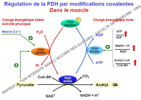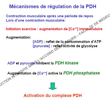 , ronéo 15 page 9, on nous dit en haut que la PDH-P est activé par le Ca2+ lors de la contraction et sous le tableau on nous dit qu'elle est activé toujours lors de la contraction par le Ca2+ et pyruvate, sauf qu'on nous dit au dessus que la PDH-K est inhibé par le Pyruvate, du coup je voulais savoir si c'était une erreur ou si le Pyruvate avait une double action d'inhibiteur de la PDH-K et activateur de la PDH-P ? J'espère que je m'embrouille pas trop, merci d'avance!!