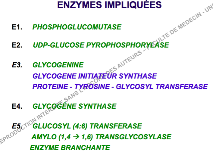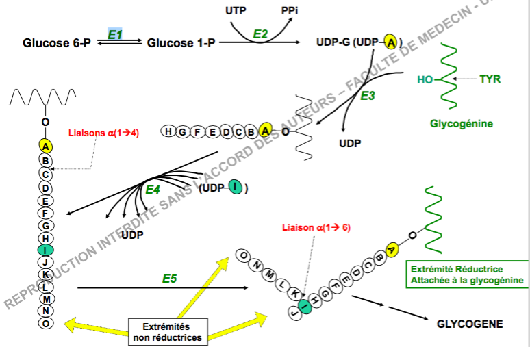 La prof ne considère pas l'hexokinase comme E1 (qui est la phosphoglucomutase) :wink2: ---> début de l'initiation & de la ramification du glycogène :D