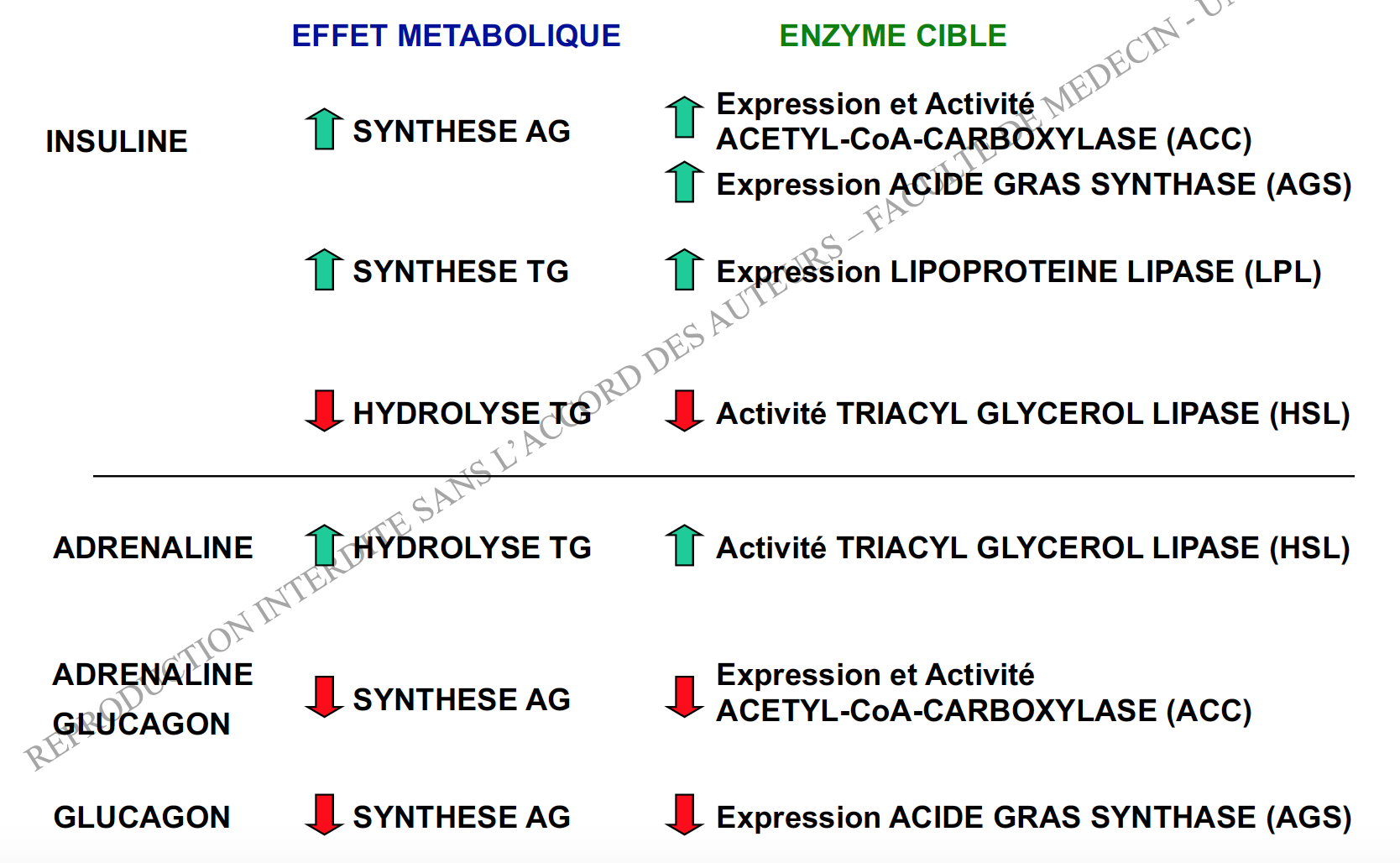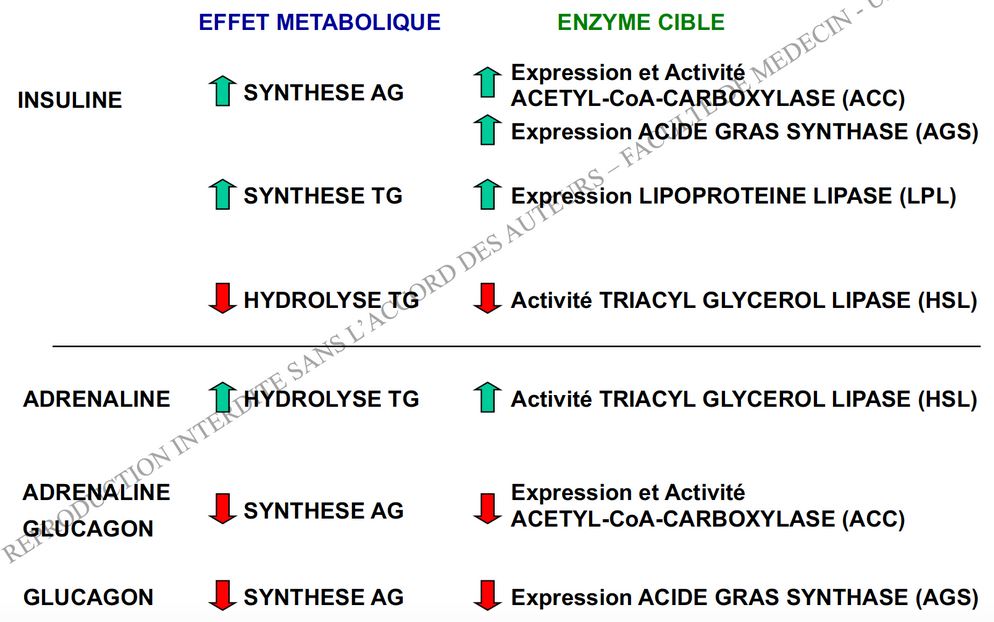 :arrow: L'adrénaline et le glucagon diminue "l'expression et l'activité de l'ACC"