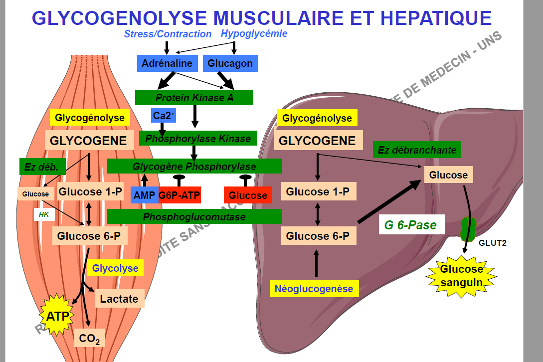 Les items : - "l'adrénaline active la glycogene phosphorylase hépatique"