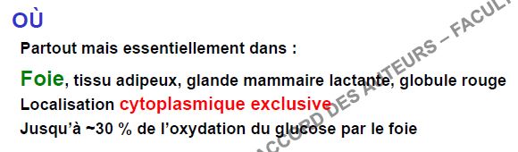 dans mon cours pour la localisation de la voie des pentoses P y'a marqué : foie, glande mammaire lactante, foie, GR