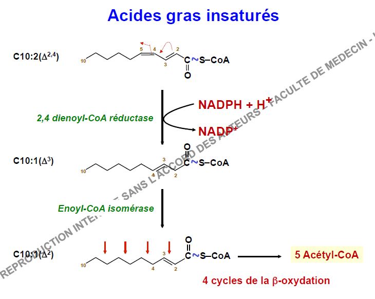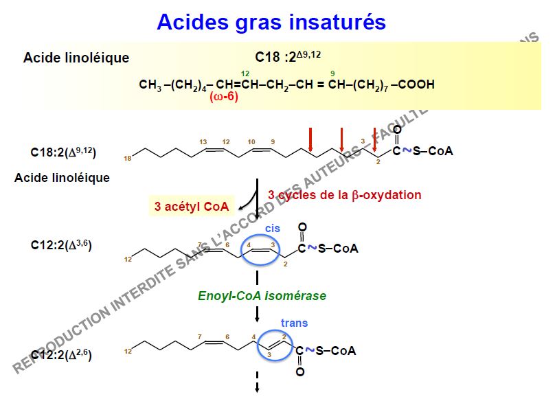 J'ai compris le déroulement avec les enzymes mais j'ai du mal à visualiser par rapport au problème des doubles liaisons et tout ça, par rapport au rôle de l'EnoylCoA isomerase et du 2,4 dienylCoA reductase .. j'arrive pas à voir comment ils déplaces les doubles liaisons etc :lol: