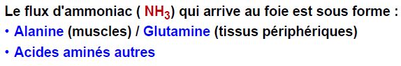 Le truc que je comprends pas c'est que l'ammoniac provient de toutes les cellules de l'organisme (ca cest ok) mais du coup il doit bien arriver au niveau au foie à un moment et pour moi c'est sous forme de glutamine principalement ou d'alanine pour ensuite arriver dans la mitochondrie du foie...