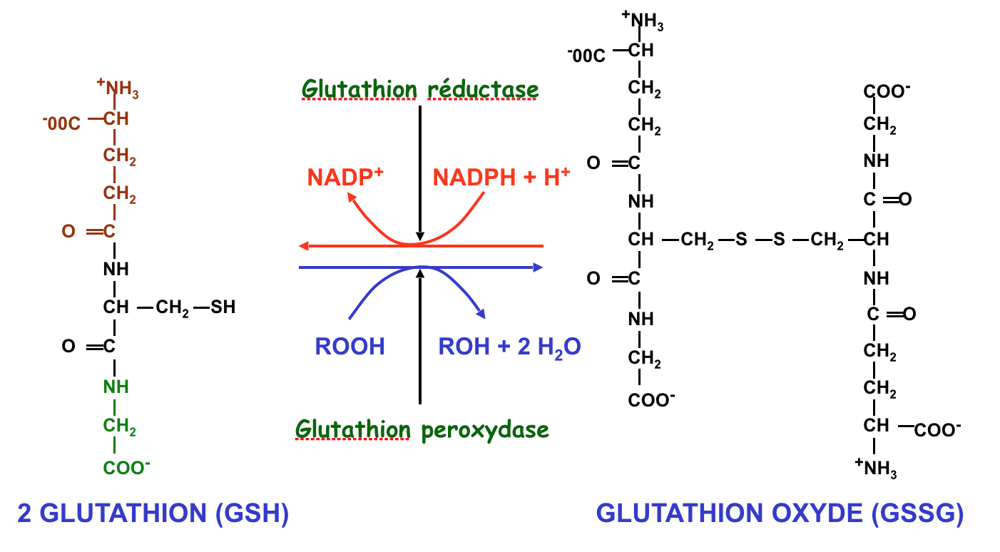 Dans son diapo la prof marque "2 GLUTATHION" à gauche, mais je ne comprends pas pourquoi 2 en fait