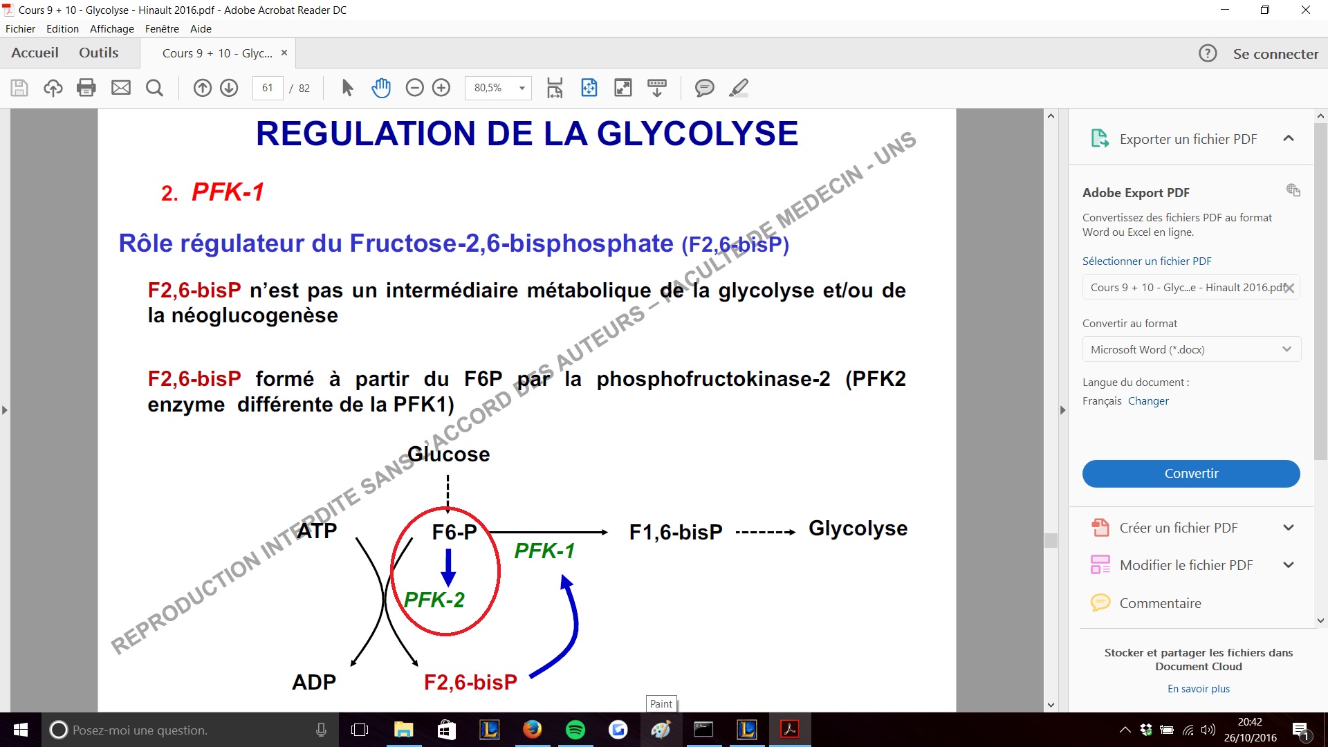- Cette régulation de la PFK-2 par le F6P est un léger détail, la prof le mentionne rapidement sur schéma
