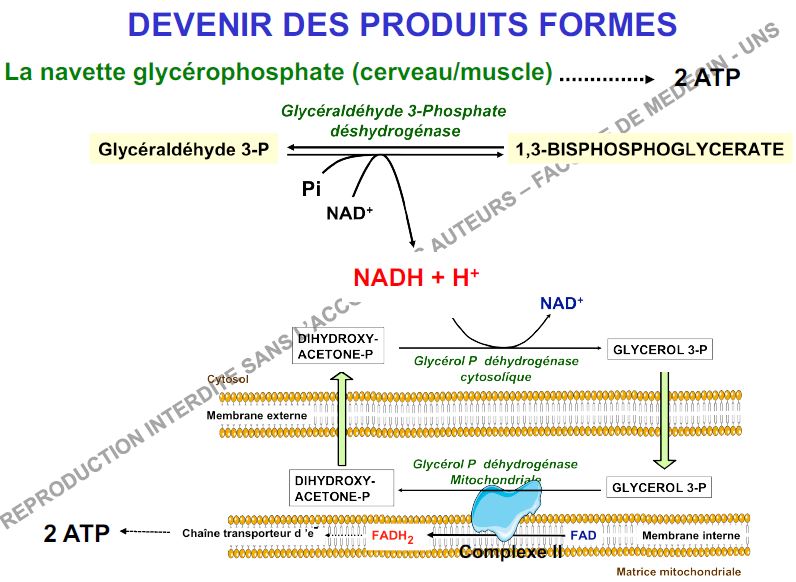 "Cette navette, lors de la glycolyse, permet de former du DHAP dans la matrice mi