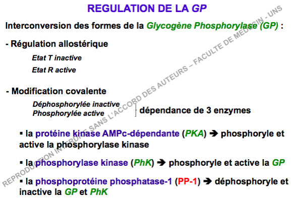 Cependant, j'ai un petit problème avec l'item D du QCM 33 : l'item ne précise pas si on parle de régulation directe ou indirecte et pour moi la PKA est une régulation indirecte car n'active pas PK en elle-même mais la Phk ! Au début j'ai compté vrai mais près je me suis dit que si on comptait vrai la PKA on devrait aussi compté l'Adenylate Cyclase qui fait partie indirectement de la cascade de régulation..