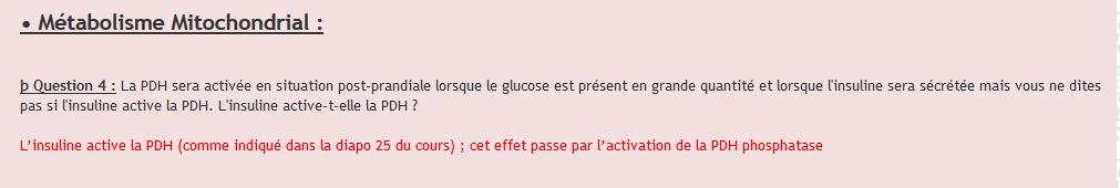Comme quoi l'insuline activerait la PDH phosphatase qui activerait donc la PDH, sauf que la prof l'a pas clairement explicité cette année... elle a juste parlé du Ca2+, de l'ADP et du pyruvate...