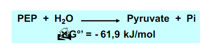 2. si jamais il y avait un QCM sur ce point il sera spécifié :"l'hydrolyse du phosphoénolpyruvate a un delta G'0 ayant la valeur la plus négative OU cette réaction est la plus exergonique