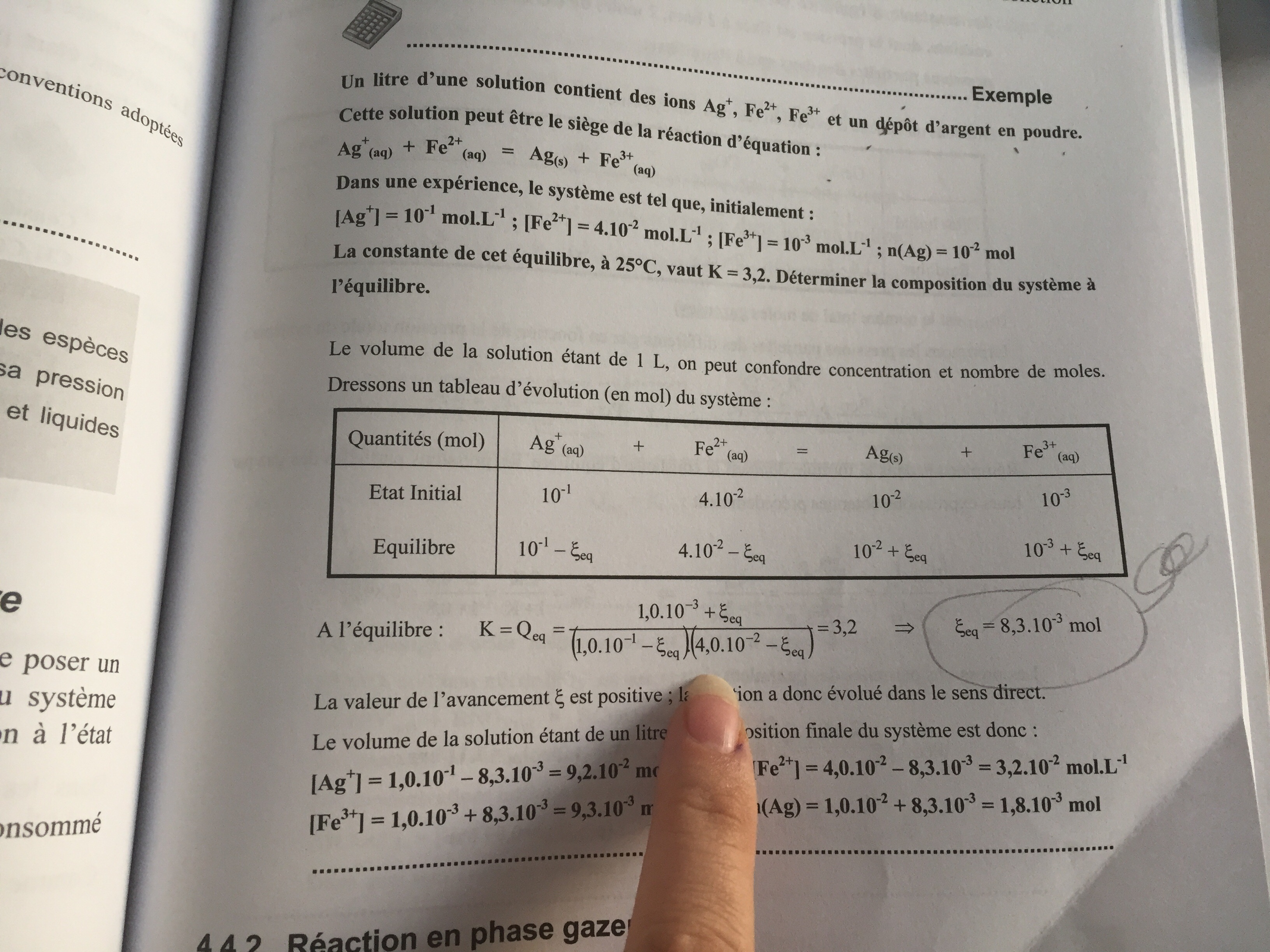 Re: L'avancement équilibre chimique
