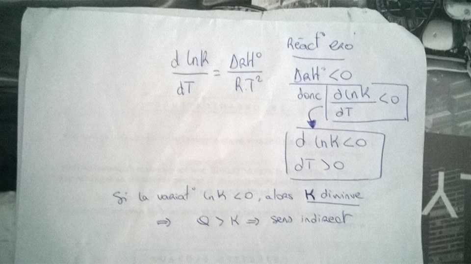 Mais du coup y a pas de ln(K)/T = DeltaH°/T^2 dans l'histoire de l'influence de la température ?