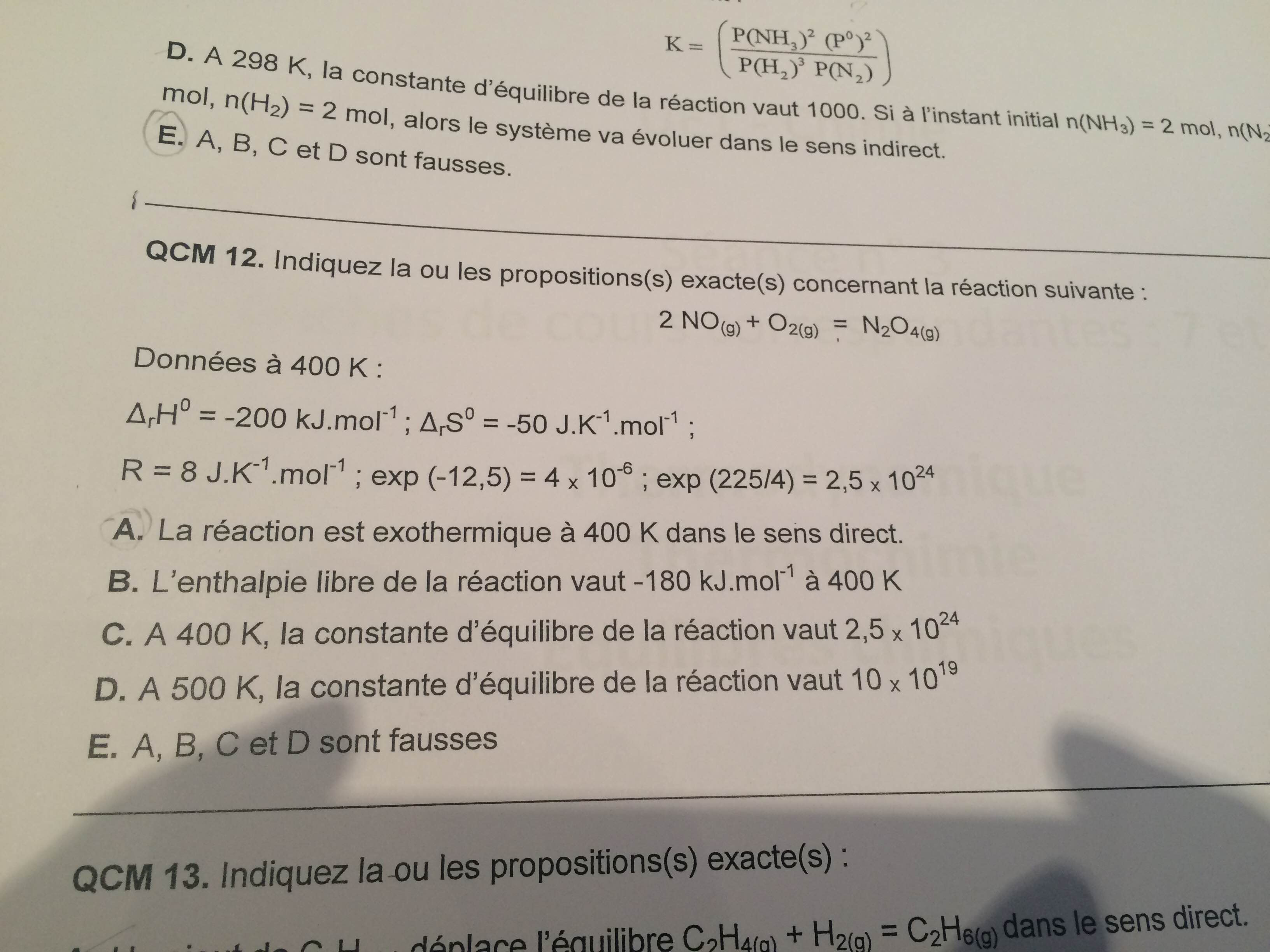 Pour la A, je dois juste regarder le signe de delta rH° ?
