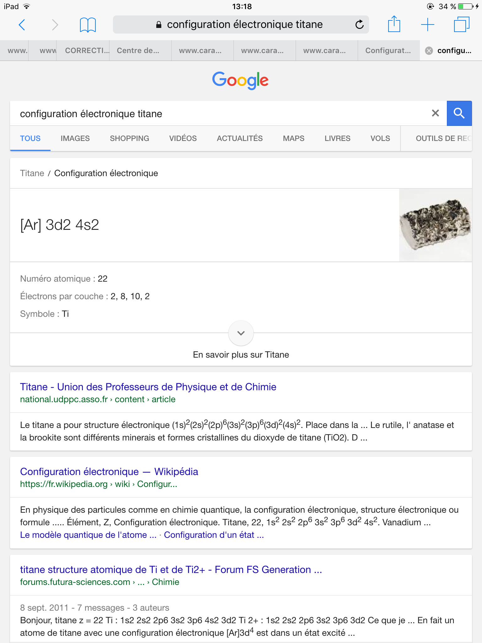 1) JE voulais savoir pourquoi LE titane à UNE configuration électronique : 1s2-2s2-2p6-3s2-3p6-3d2-4s2.