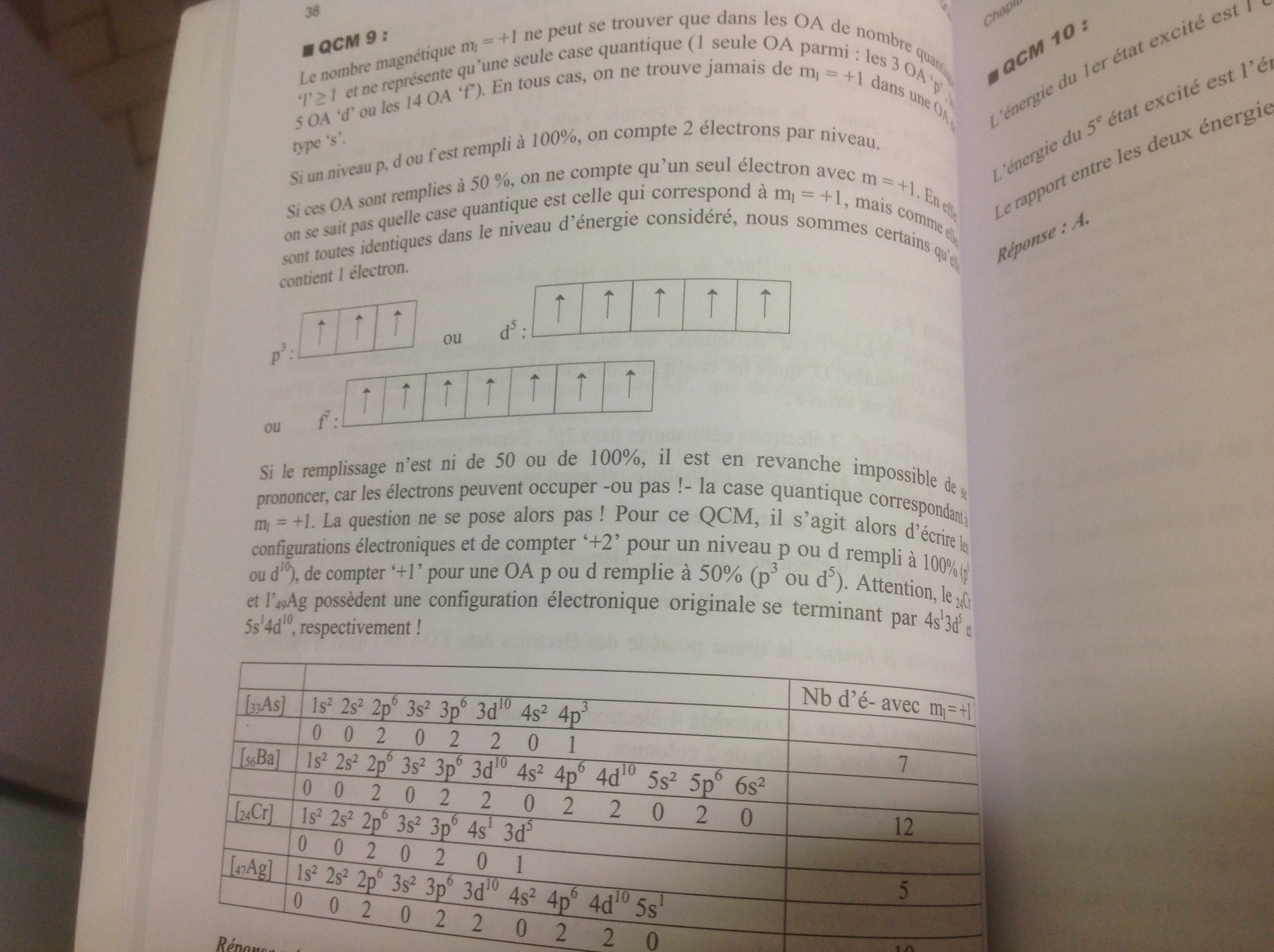 2) quand on nous demande combien d'électrons à un atome pour m=x, est ce qu'on compte les orbitales non remplies complétement : au lieu de 2e- on compte 1e- ?