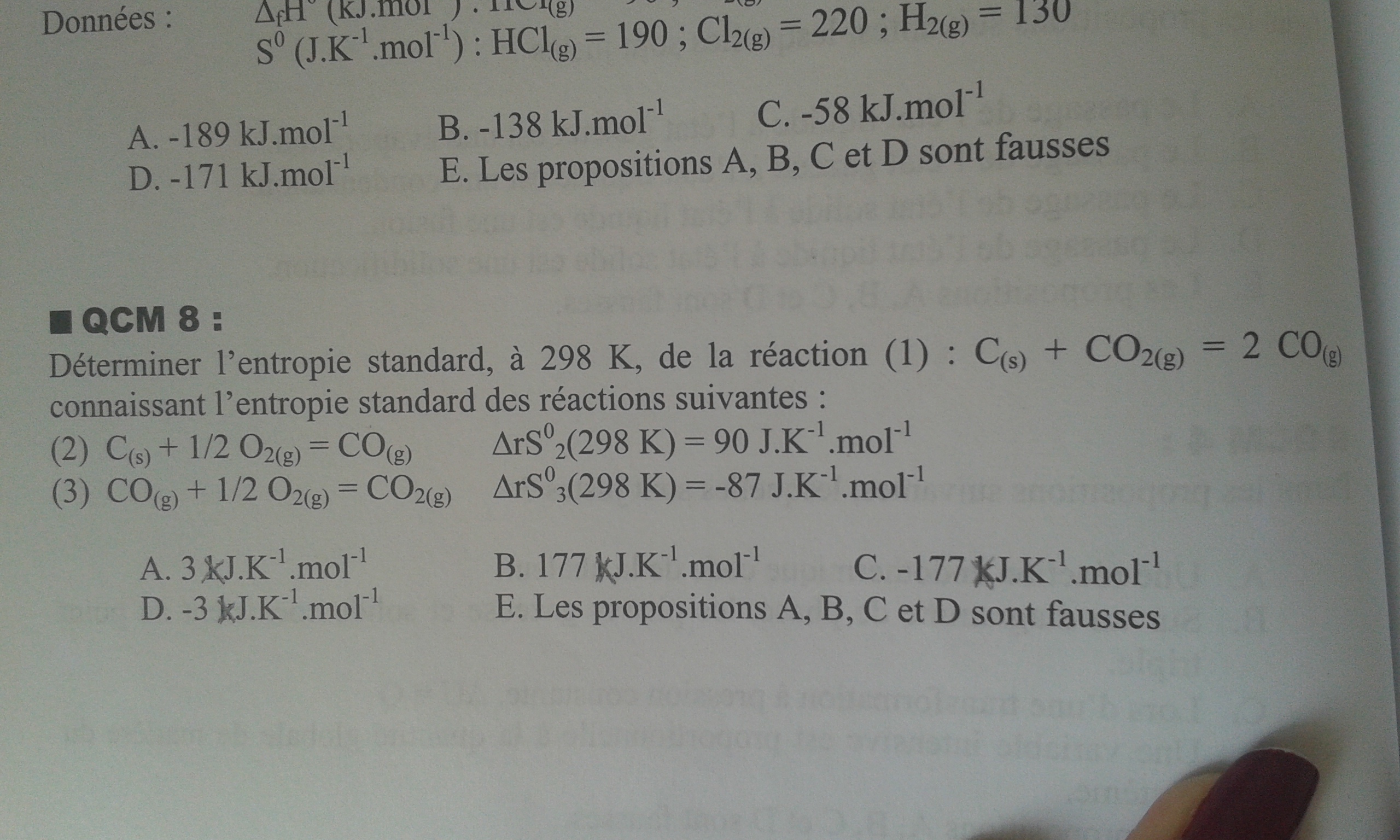 (g) ! Parce qu'il y a une égalité !!! Donc la réaction (3) marche aussi bien dans un sens que dans l'autre, sauf qu'ici, on l'utilise dans le sens opposé, donc on appliquera l'opposé de la valeur