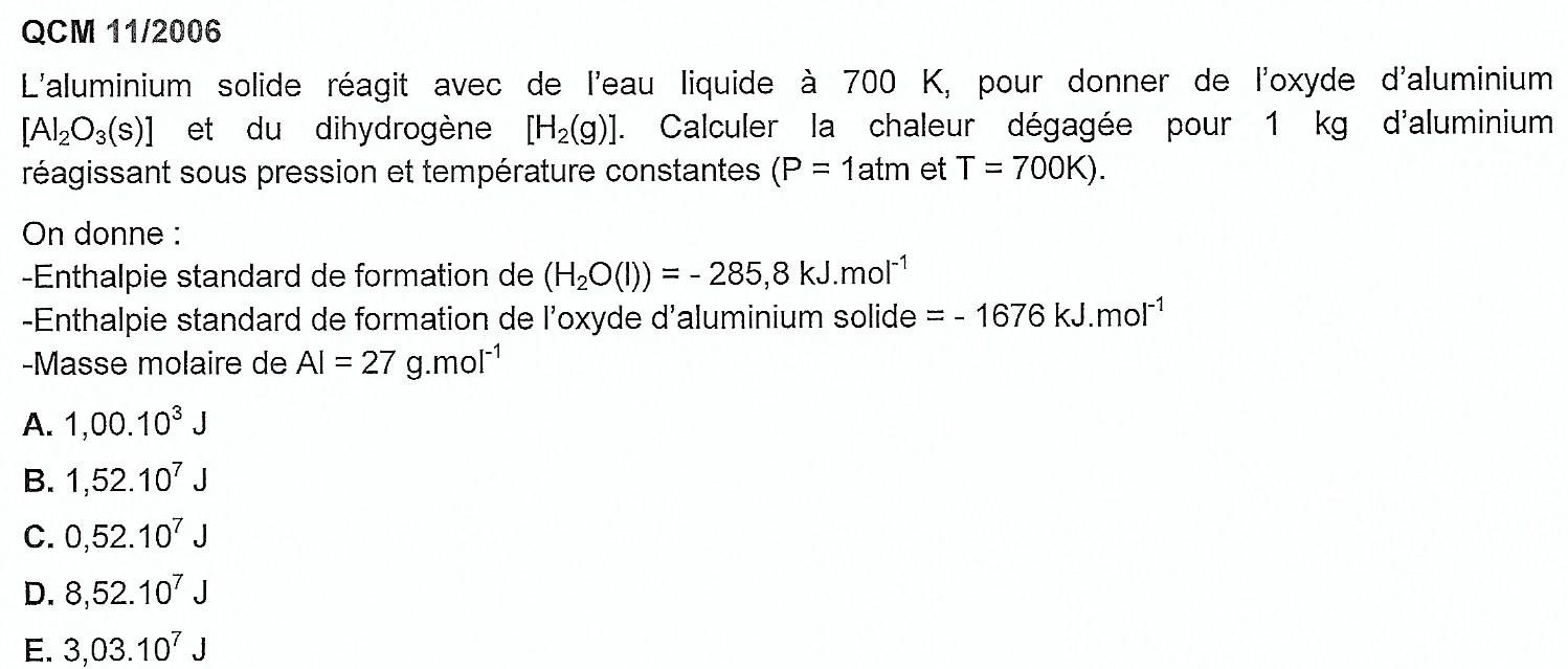 Comme Al(s) et H2(g) sont dans leur états standards, ΔfH0 est nul... 3*285.8-1676=-818.6 donc comment sont-ils arrivés à la B..? :hypnotized: