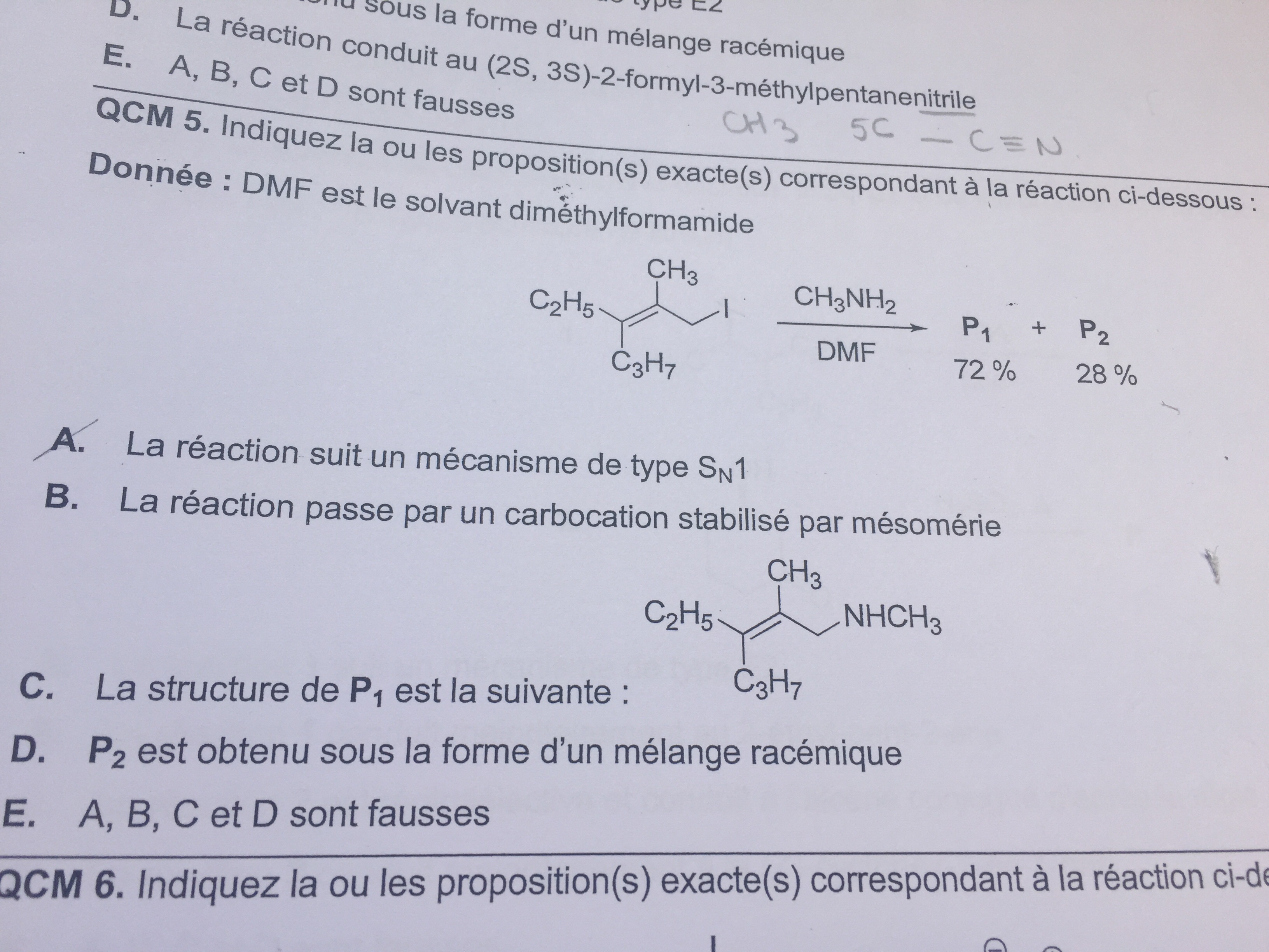 On hésite maintenant entre SN1/E1, or on sait que la chaleur est nécessaire pour les éliminations d'ordre 1: il n'y en a pas :arrow: SN1