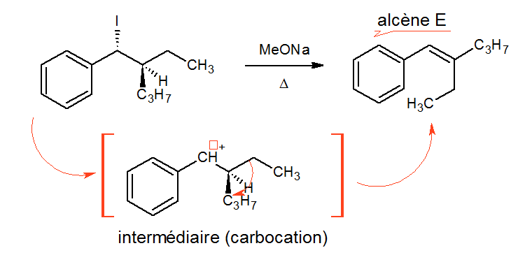 Pour l'E1, tu passes par un carbocation, on va donc pouvoir tourner autour des liaisons simples pour pouvoir arriver sur notre alcène E (attention, on ne peut pas tourner dans un cycle ++)