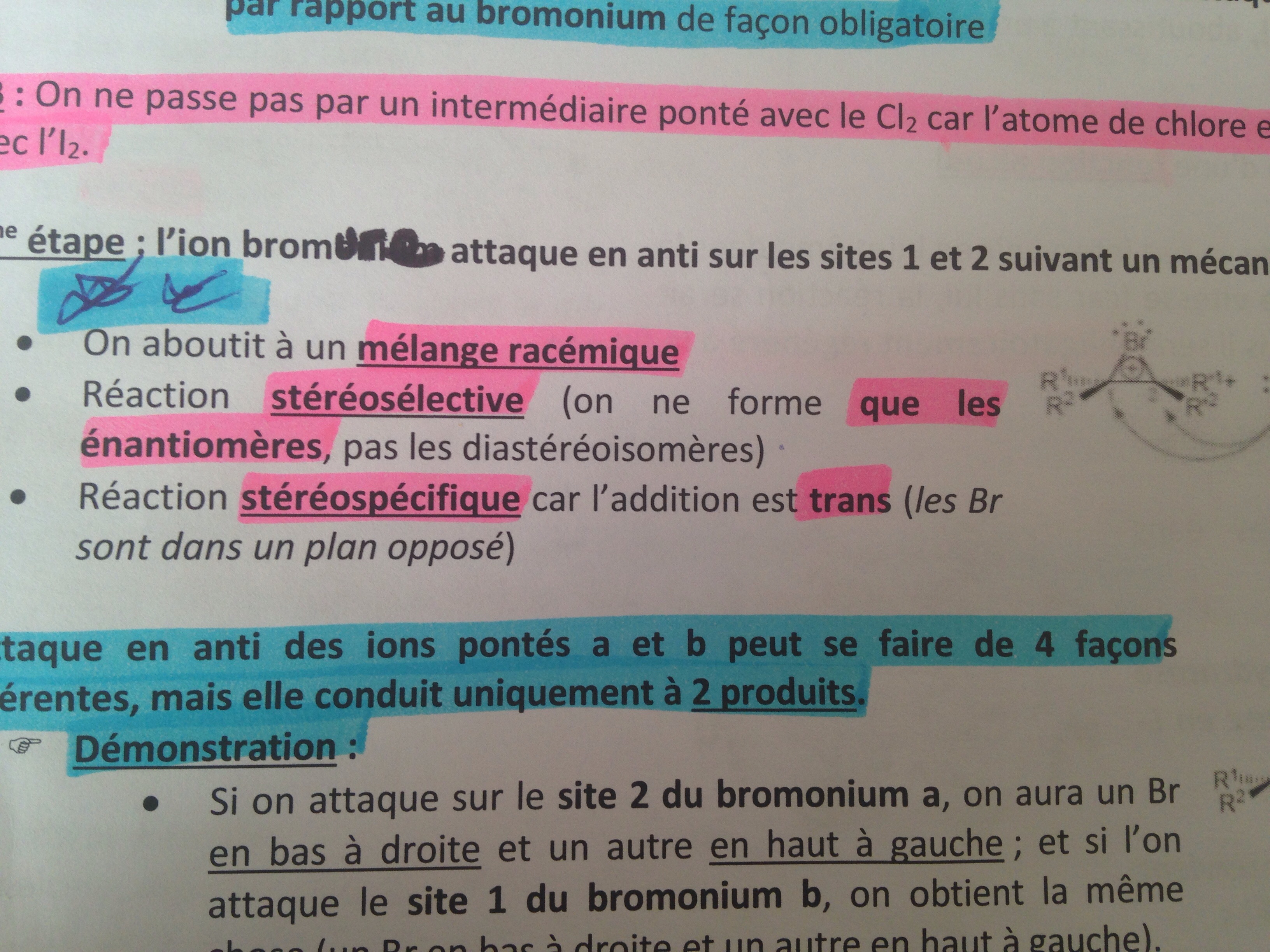 Salut je vois pas Pk la réaction est stéréospécifique si l'addition est trans ! Cest pas plutôt psk elle est en anti ?? Vu que cis et trans cest la configuration relative et pas absolu .. voila merci
