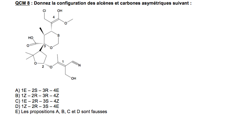 J'ai un petit problème avec un qcm sur S/R, la réponse étant D, je ne comprends pas pourquoi le carbone numero 3 est S.. Si vous pouvez m'expliquer,merci!