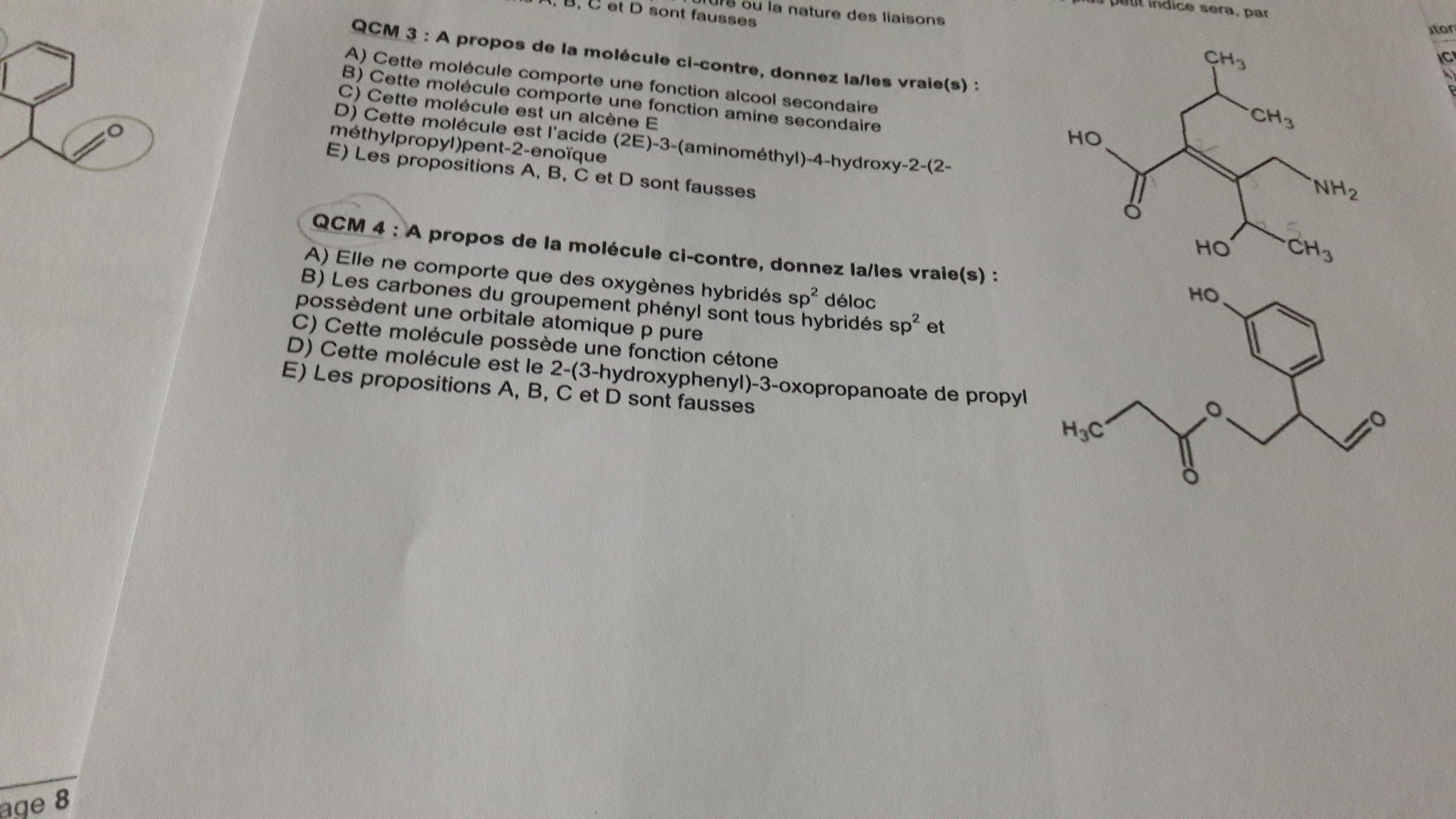 Pour l'item A : la correction n'est pas fausse mais pas adaptée. En fait, il suffit de trouver un contre exemple pour répondre à ce genre d'item. Ici, l'oxygène de droite (qui forme la fonction aldéhyde) est hybridé sp2 loc.