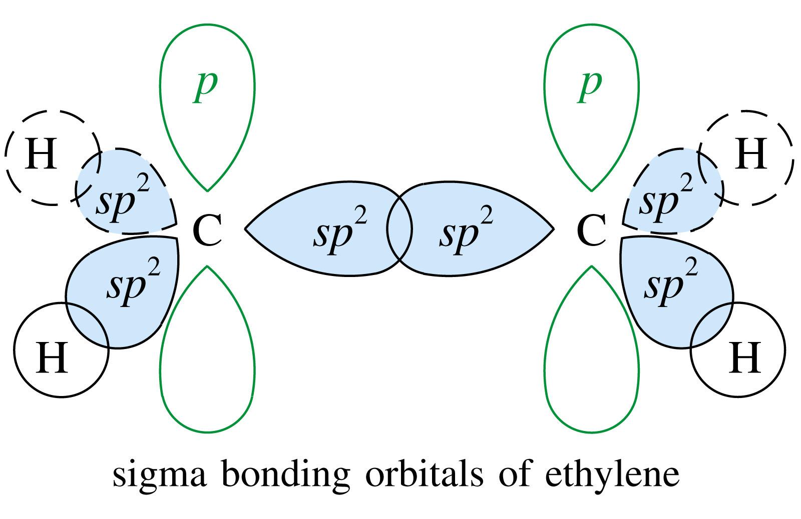 Les carbones font chacun des liaisons dans 3 directions différentes, ils sont bien hybridés sp2. Ce qui laisse bien une orbitale p pure de libre (3 OH sp2 + 1 OA p pure)