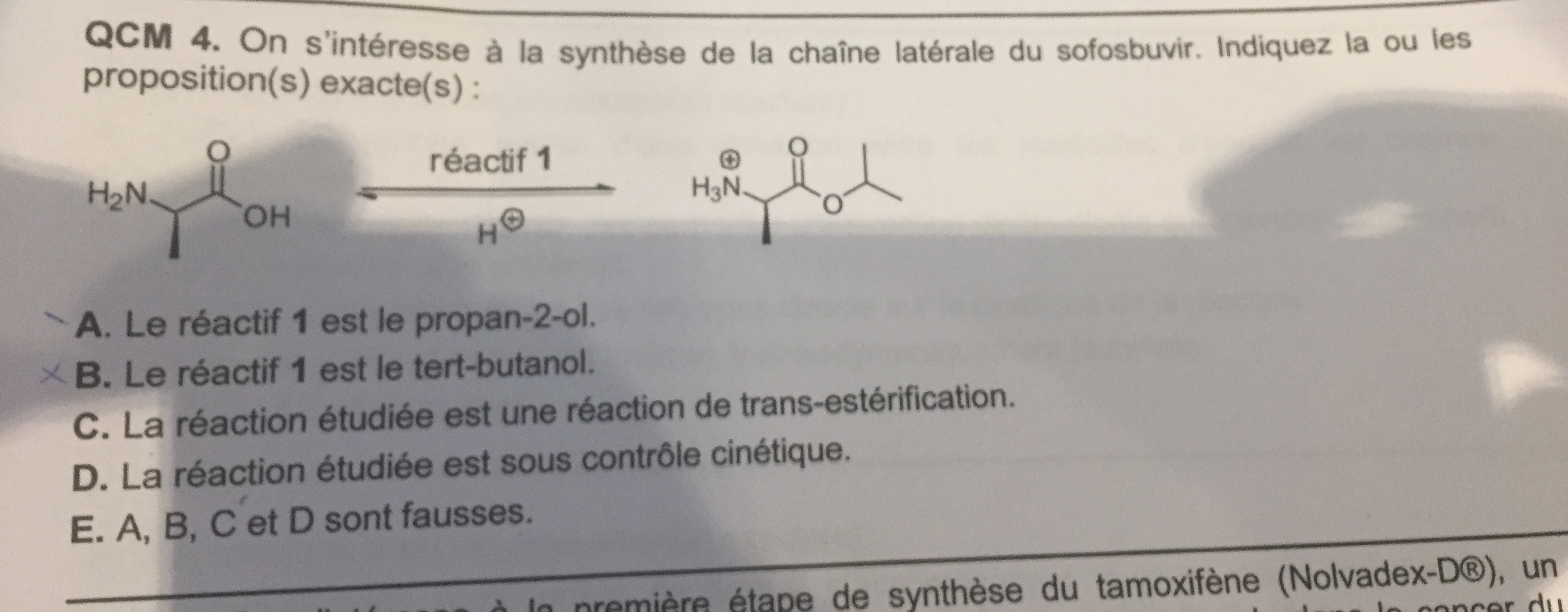 Car dans ce qcm on compte vrai l'item c or on passe pas d'un Ester a un Ester