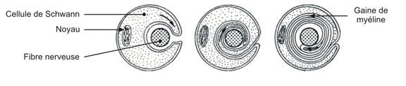pas de gaine de myéline, elle va juste 'envelopper' les