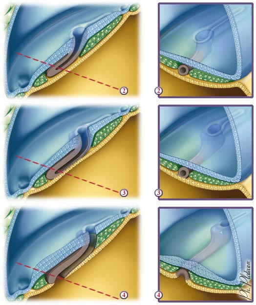 Une fois que le canal va toucher le fond il va fusionner et former la plaque chordale (il ne restera plus que la partie dorsale du canal qui s'épaissit) et c'est là que la communication va se faire, avant il n'est pas possible d'en voir une.