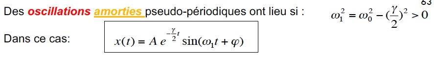 Pour l'autre diapo, on te donne la condition pour avoir des oscillations amorties pseudo-périodiques : il faut que