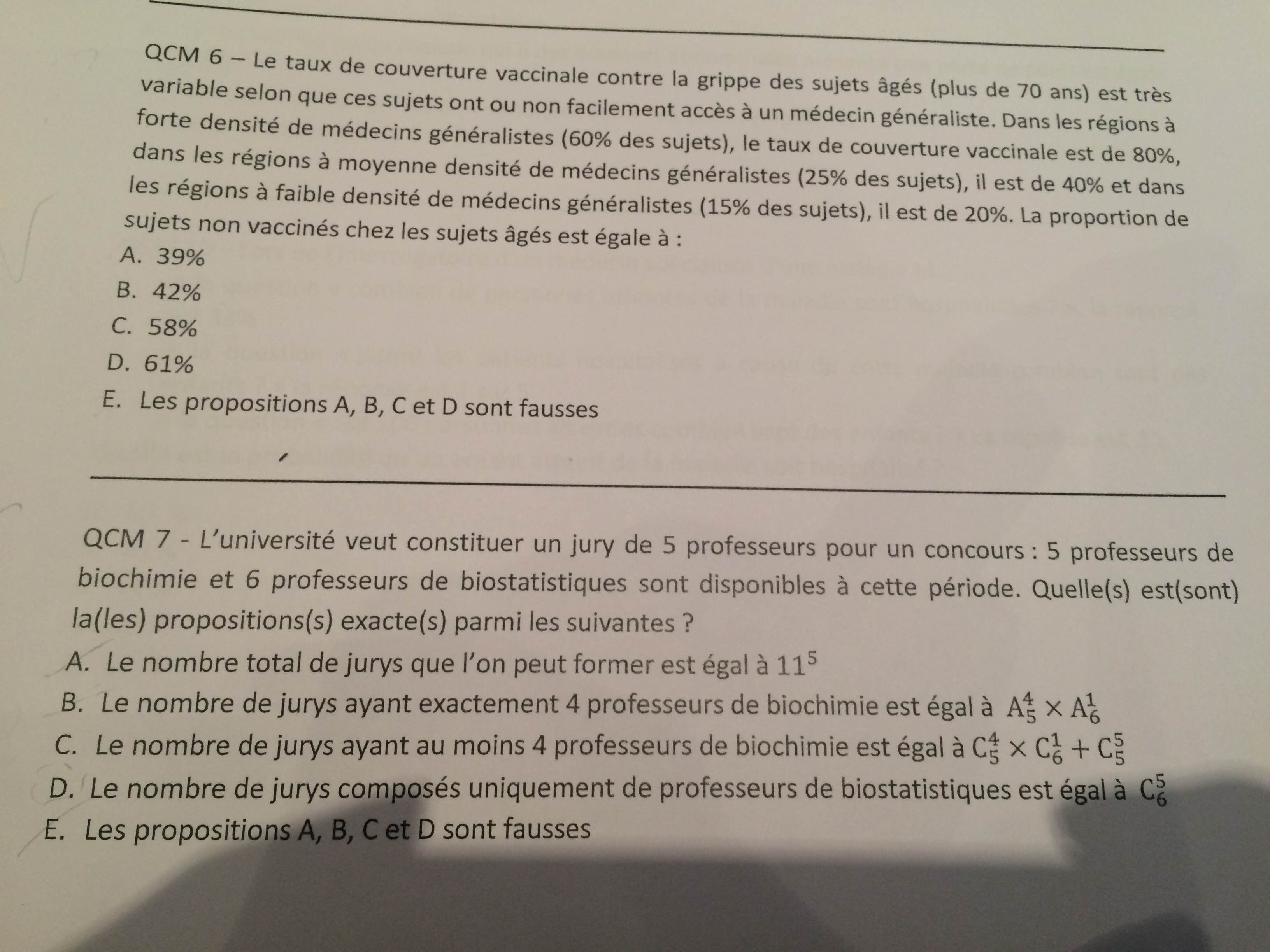 En gros le nombre de jury avec exactement 4 profs de Bioch c'est C4parmi5 (on veut 4 profs parmi les 5 disponible) * C1parmi6 (on ne veut qu'un seul prof parmi ceux disponible)